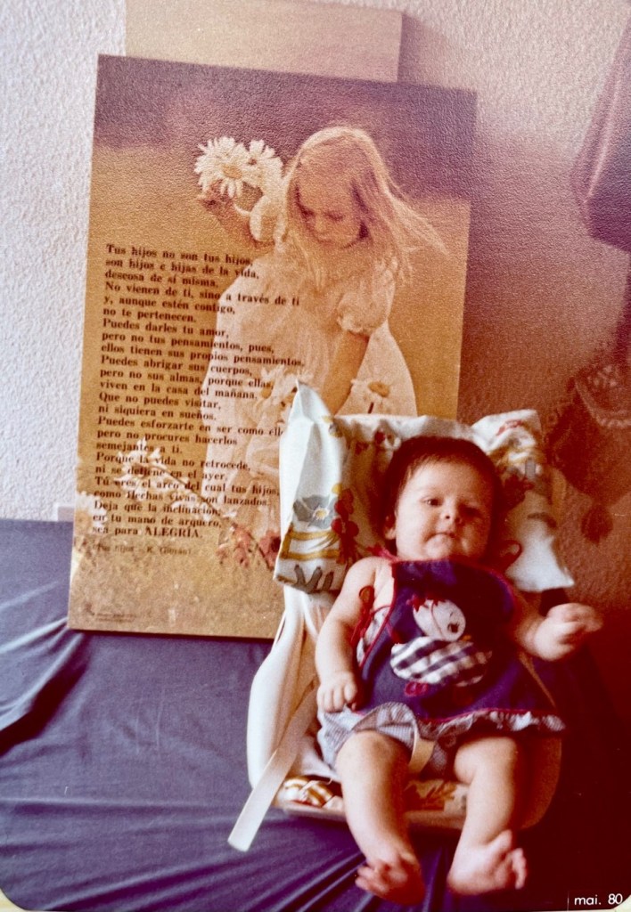 O poema escrito em espanhol me desafiava. Decidida a fazer minha primeira tradução, fui até a biblioteca do meu pai e pesquisei no dicionário o significado de Tus Hijos. Depois, com as palavras que havia descoberto, traduzi um pedaço do poema. Mesmo assim, demorei muito para compreender o verdadeiro sentido daquelas palavras. Acho que até hoje aprendo com elas, e tenho certeza de que minha mãe seguiu ressignificando aquele poema.